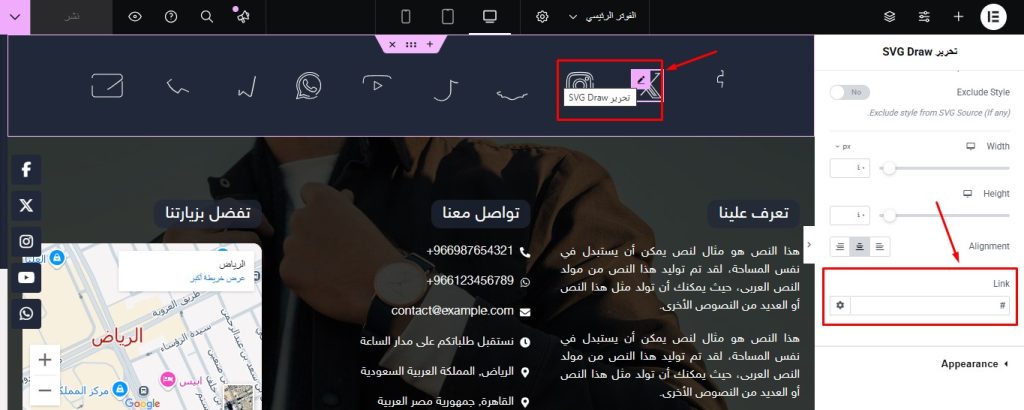 ثم نقوم بالتعديلات المطلوبة مثلاً نغير روابط مواقع التواصل الاجتماعي